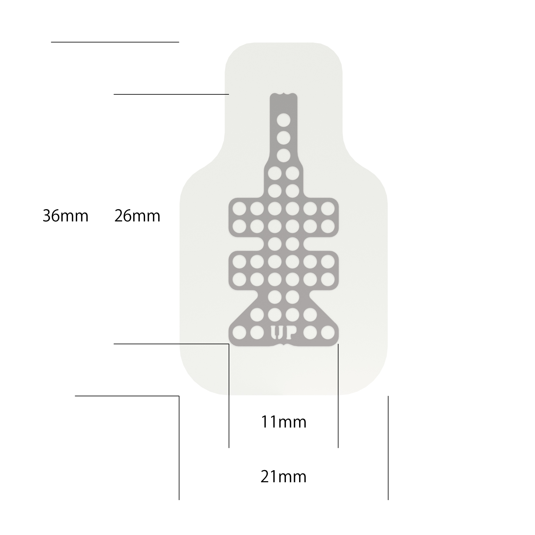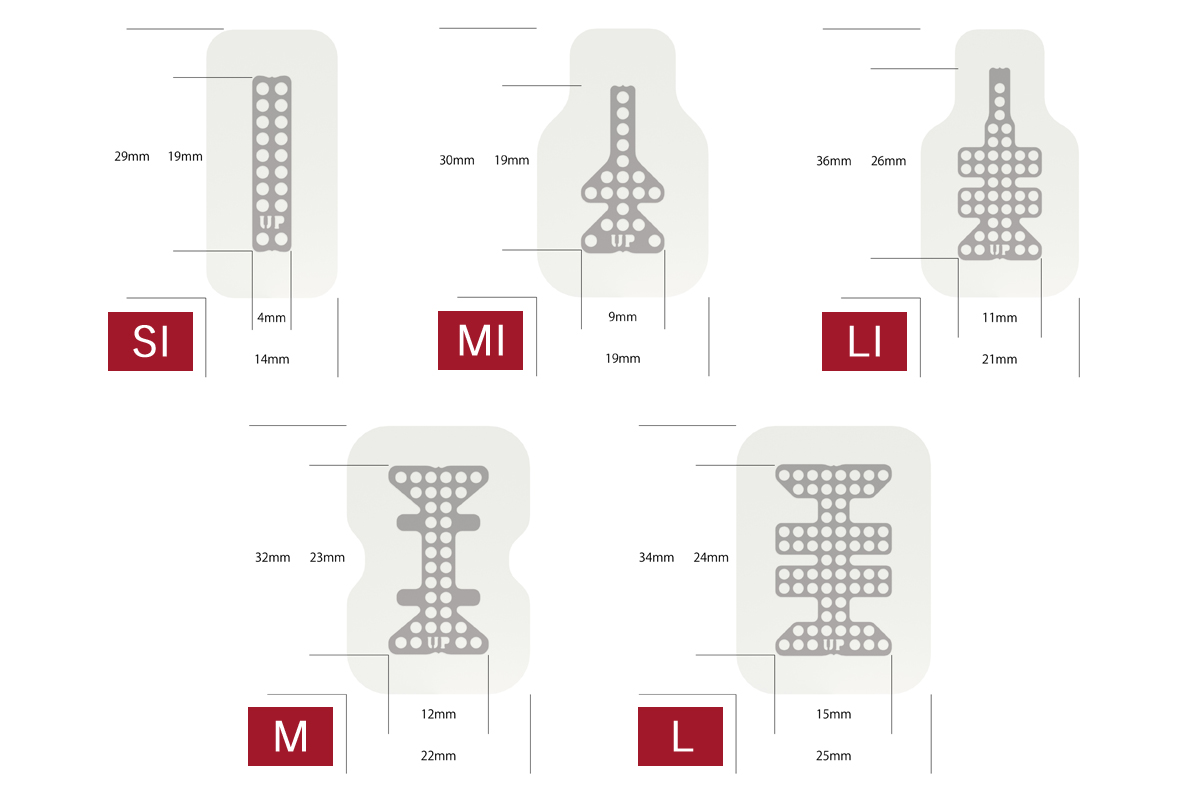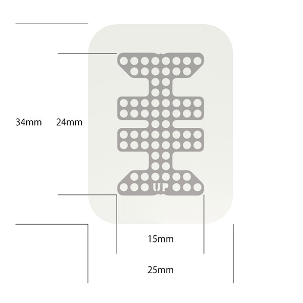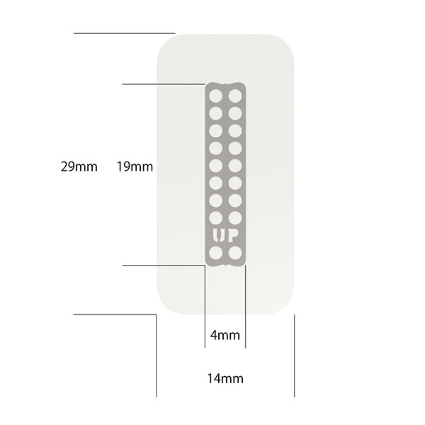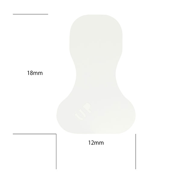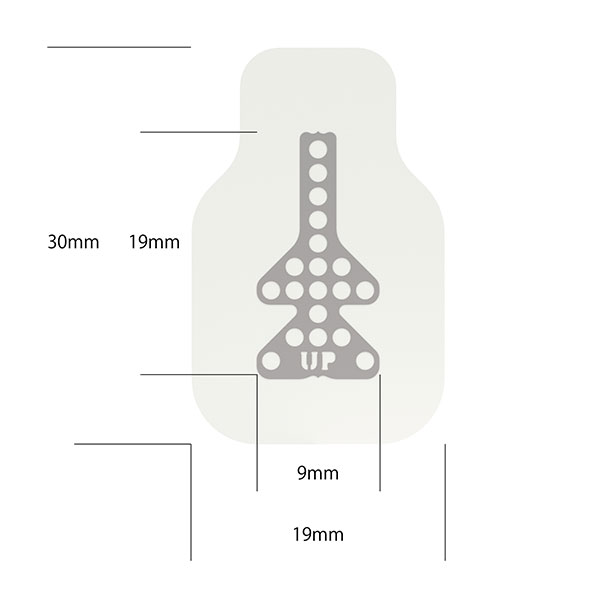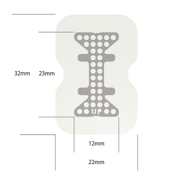 メンブレンには特性の異なる2つの面があり、軟組織側(外側)には「UP」の文字がエンボス加工されています。適用部位に合わせてメンブレンをトリミングする場合、チタンメッシュから1mm以上離して行います。